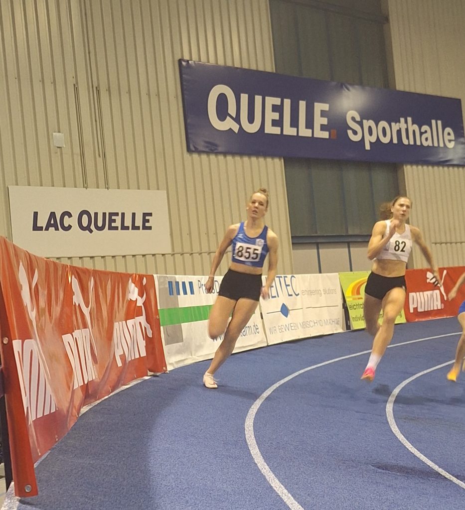 Fürth, 07.12.2024: Mit dem Sprintcup in Fürth stand Anfang Dezember traditionell der erste Leistungscheck der neuen Saison an. Somit fuhren mit Melinda Wilczok, Ariane Frey, Leonie Sima und Lina Münch 4 Athletinnen aus der U16 und U18 auf die blaue Bahn in der Quelle-Halle, um die aktuelle Form zu überprüfen.