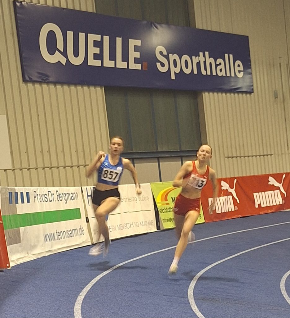 Unsere Sprintspezialistinnen Leonie und Lina konnten dabei im Sprintzweikampf, bestehend aus fliegenden 30m und dem 60m-Sprint, überzeugen: