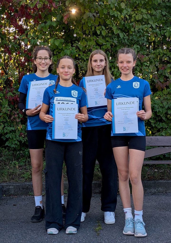 Aschheim, 28.09.2025: Am 28.9.25 standen die ersten Oberbayrischen Meisterschaften für die U14 in Aschheim an. Durch die Pause in den Sommerferien und daher nur kurzer Vorbereitungszeit wurden die Erwartungen nicht zu hochgeschraubt, trotzdem zeigten die fünf mitgereisten Athletinnen einer tolle Team-Leistung!