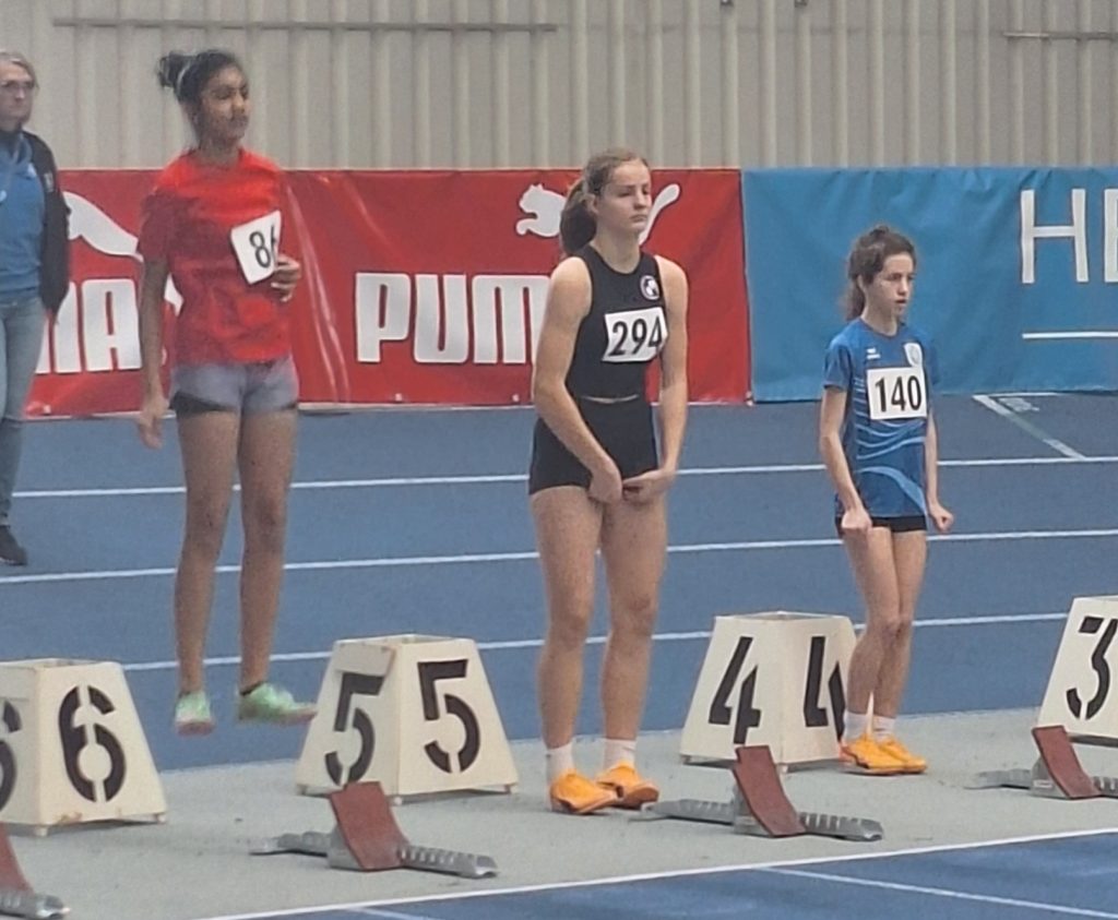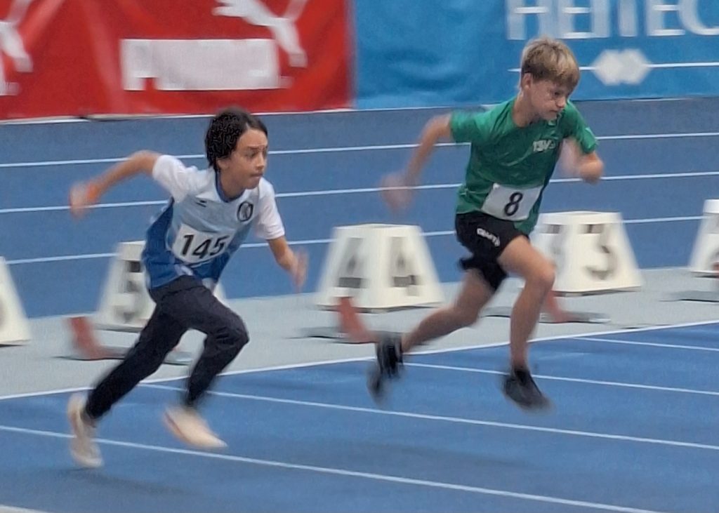 Fürth, 06.12.2025: Was machten unsere SportlerInnen denn so am Nikolaustag? Plätzchen, Punsch und Nikolausgeschenke? Nein, aus der U14 machten sich mit Svea El-Komi, Anna und Lilly Richter, Emilio Mendoza Scheidt und Julian Schneider immerhin 5 SportlerInnen auf den Weg nach Fürth. Dort fand am 2. Adventswochenende der Sprint Cup 2025 statt, auf dem Zettel stand ein Sprint-Zweikampf bestehend aus 60m und 30m fliegend. Für Emilio und Julian war dies die erste offizielle Teilnahme an einem überregionalen Wettkampf. Die Ergebnisse waren eine gute Mischung aus persönlichen Bestleistungen und Erstleistungen unter Wettkampfbedingungen, daher können wir an dieser Stelle auch die Details aus den Ergebnislisten ausnahmsweise verzichten.